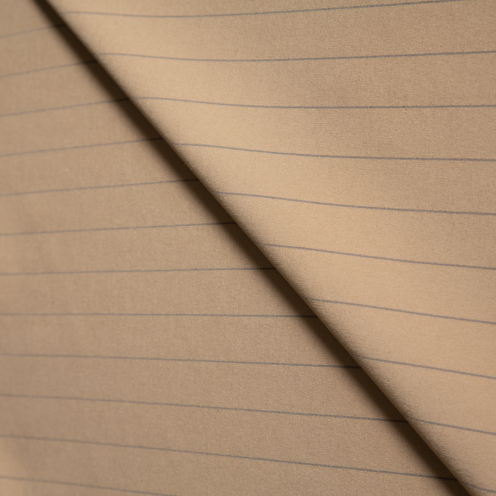 1,50 μ φάρδος. 90% πολυέστερ 10% ελαστίνη. Στο συγκεκριμένο ύφασμα απεικονίζεται ριγέ σχέδιο με ρίγα σε γκρι χρώμα και βάση σε καμηλό. Τα κρεπ υφάσματα χαρακτηρίζονται από ματ και σπασμένη όψη. Η ελαστικότητα που διαθέτουν προσφέρει τέλεια εφαρμογή και άνεση κινήσεων. Δεν γλιστράνε καθόλου πάνω στο σώμα και δεν τσαλακώνουν. Είναι κατάλληλα για την ραφή πάσης φύσεως ρούχων, όπως παντελόνια, φούστες κτλ.