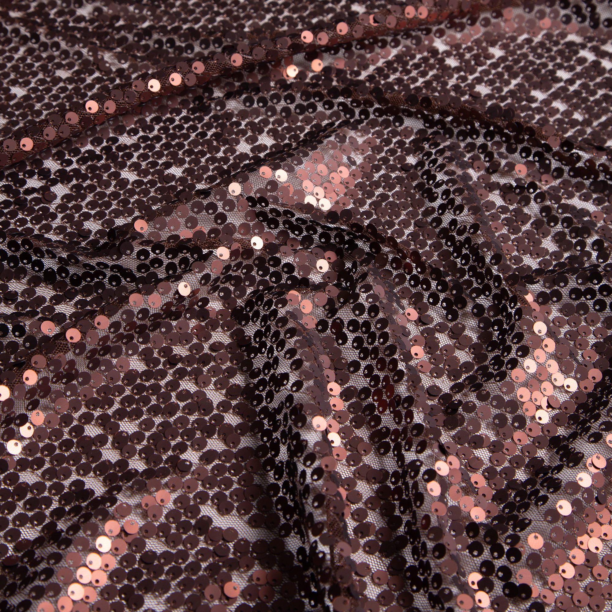 1,50μ φάρδος. 100% πολυέστερ. Παγιέτα με πυκνή επένδυση σε καφέ χρώμα η οποία είναι ραμμένη πάνω σε τούλι. Διαθέτει μία μικρή ελαστικότητα η οποία προσφέρει άνεση κινήσεων. Μπορεί να χρησιμοποιηθεί για βραδινά ρούχα, θεατρικές ενδυμασίες αλλά και στολισμούς, δίνοντας λάμψη σε όλες τις δημιουργίες. Συστήνεται πλύσιμο στο χέρι ή στεγνό καθάρισμα για μακροχρόνια ανθεκτικότητα