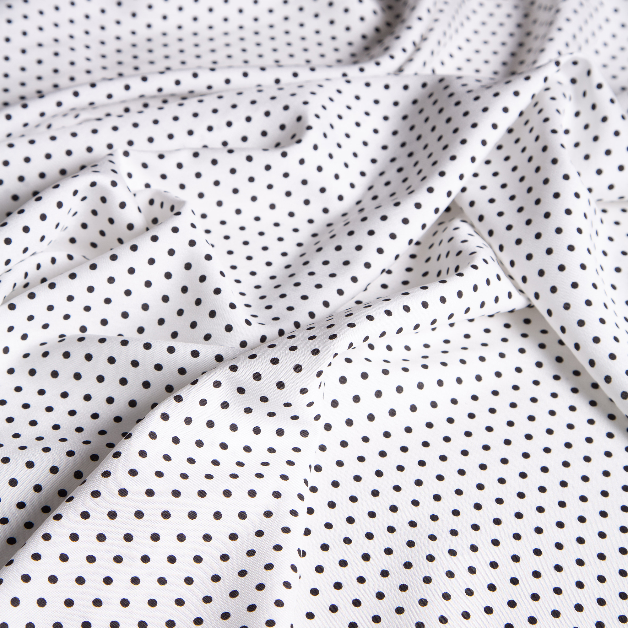 1,50 μ φάρδος. 100% βισκόζη. Απεικονίζεται μαύρο πουά σε λευκό φόντο. Βασικά χαρακτηριστικά του υφάσματος είναι η φυσική υφή και η μαλακή αίσθηση που προσφέρει. Είναι απαλή και λεία βοηθώντας παράλληλα το σώμα να αναπνέει. Πέφτει πολύ ωραία έχοντας αέρινη και ανάλαφρη κίνηση. Τέλος, απορροφά τον υγρασία κάτι που την καθιστά την καταλληλότερη, ίσως, επιλογή για τους ζεστούς καλοκαιρινούς μήνες. Δεν δυσκολεύει στο ράψιμο και με αυτήν μπορούν να δημιουργηθούν ρούχα όπως κιμονό, παντελόνια, πουκάμισα, μπλούζες, φούστες κ.α.