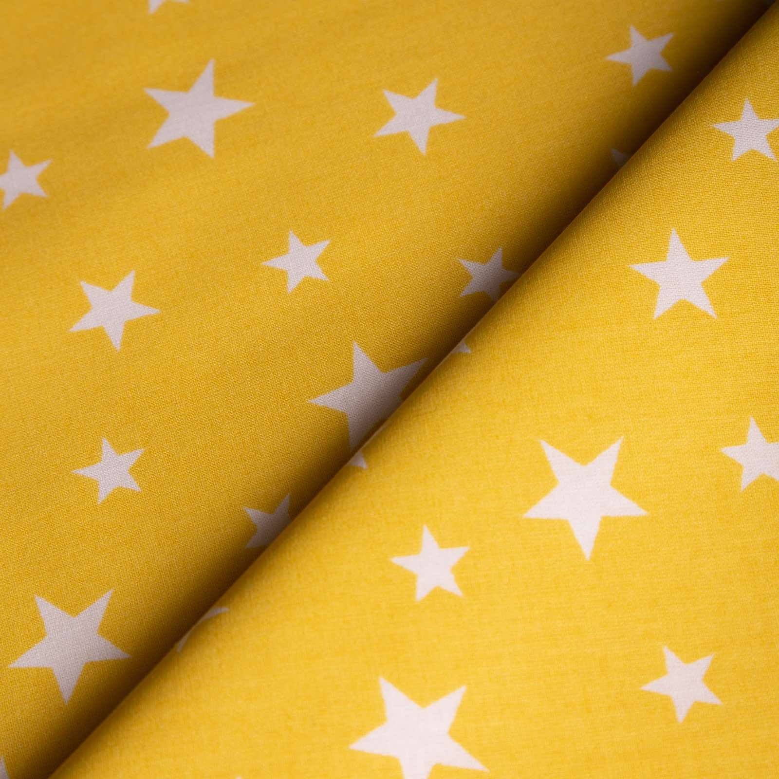 2,40 μ φάρδος. 100% βαμβάκι. Στο φόντο απεικονίζονται άσπρα αστέρια διάσπαρτα σε όλη την επιφάνεια και βάση σε κίτρινο χρώμα. Είναι πολύ φιλικό προς το δέρμα και το βοηθά να αναπνέει. Χαρακτηρίζεται, επίσης από ανθεκτικότητα και από πολύ μαλακή και απαλή υφή. Προτείνεται ανεπιφύλακτα και για βρέφη. Μπορεί να χρησιμοποιηθεί και για διάφορες κατασκευές όπως νεσεσέρ και τσάντες. Πρέπει να πλυθεί πριν ραφτεί καθώς μαζεύει 2-3%.