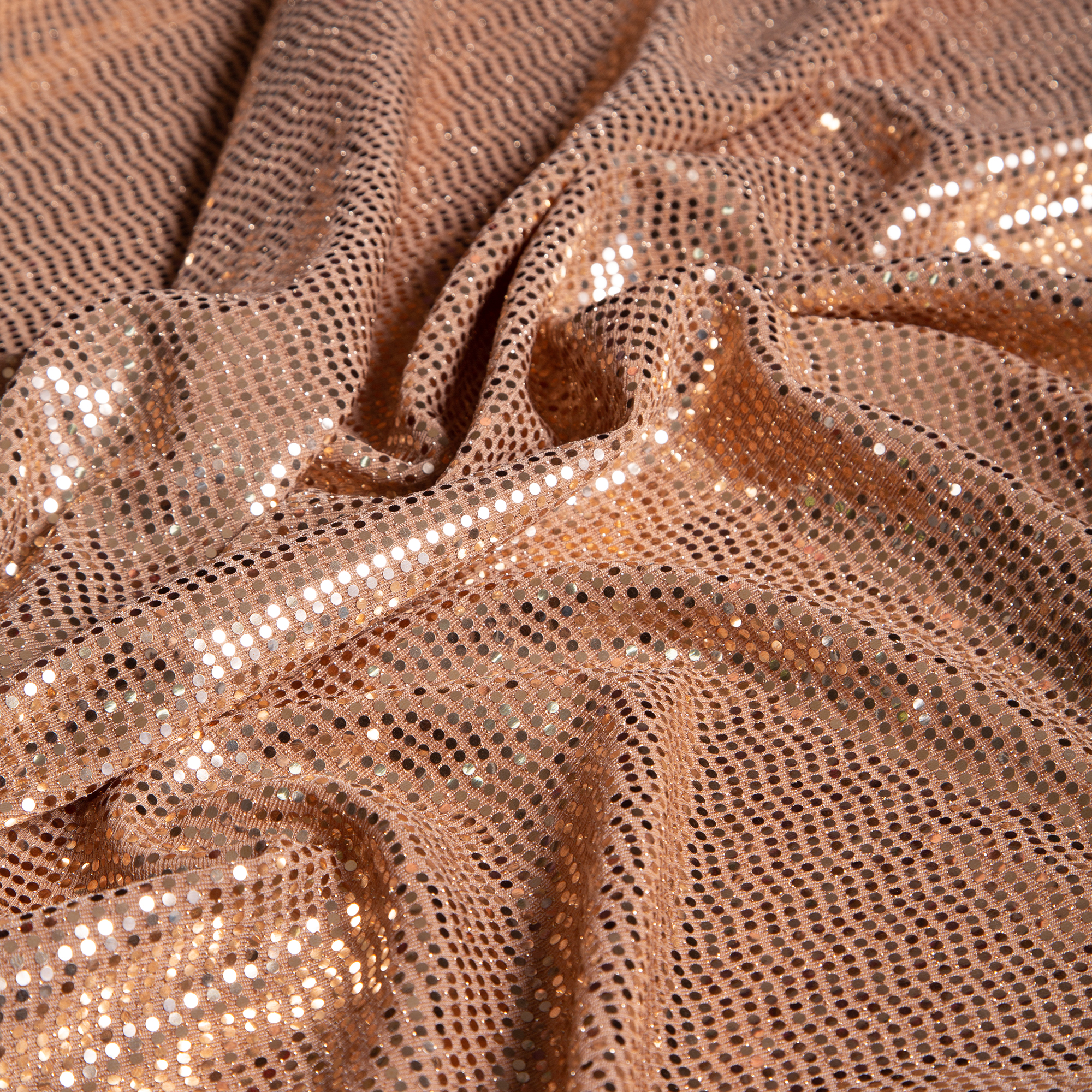 1,50 μ φάρδος. 92% νάιλον, 3% metal 5% spandex.Ύφασμα το οποίο διαθέτει πυκνές mirror παγιέτες, οι οποίες έχουν την δυνατότητα να αντανακλούν το φως. Η βάση του είναι jersey, έτσι ώστε να υπάρχει άνεση κινήσεων. Μπορεί να χρησιμοποιηθεί για την ραφή επίσημων ρούχων και προτείνεται στεγνό καθάρισμα