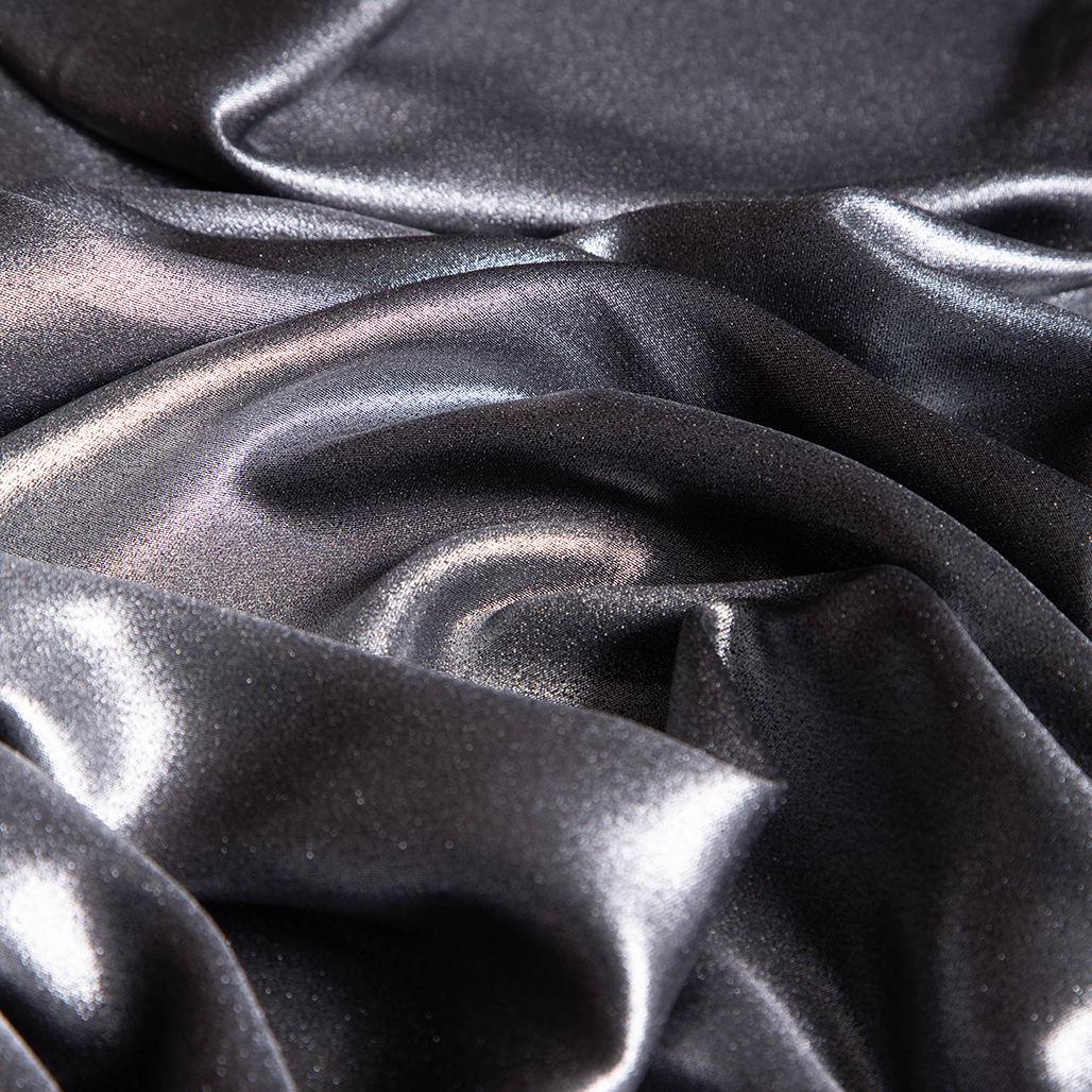 1.50 μ φάρδος. Foil ονομάζονται τα υφάσματα που διαθέτουν μια λεπτή στρώση μεταλλικού φίλμ, η οποία προσδίδει μια μεταλλιζέ και καθρεπτίζουσα εμφάνιση. Το ύφασμα βάσης είναι crep σε ασημί απόχρωση. Μπορεί να χρησιμοποιηθεί για την ραφή εντυπωσιακών ρούχων όπως φορέματα, φούστες κτλ, αλλά και για διακοσμήσεις. Χρειάζεται προσοχή στο ράψιμο αλλά και στο πλύσιμο. Προτείνεται στεγνό καθάρισμα ή καθαριστήριο.