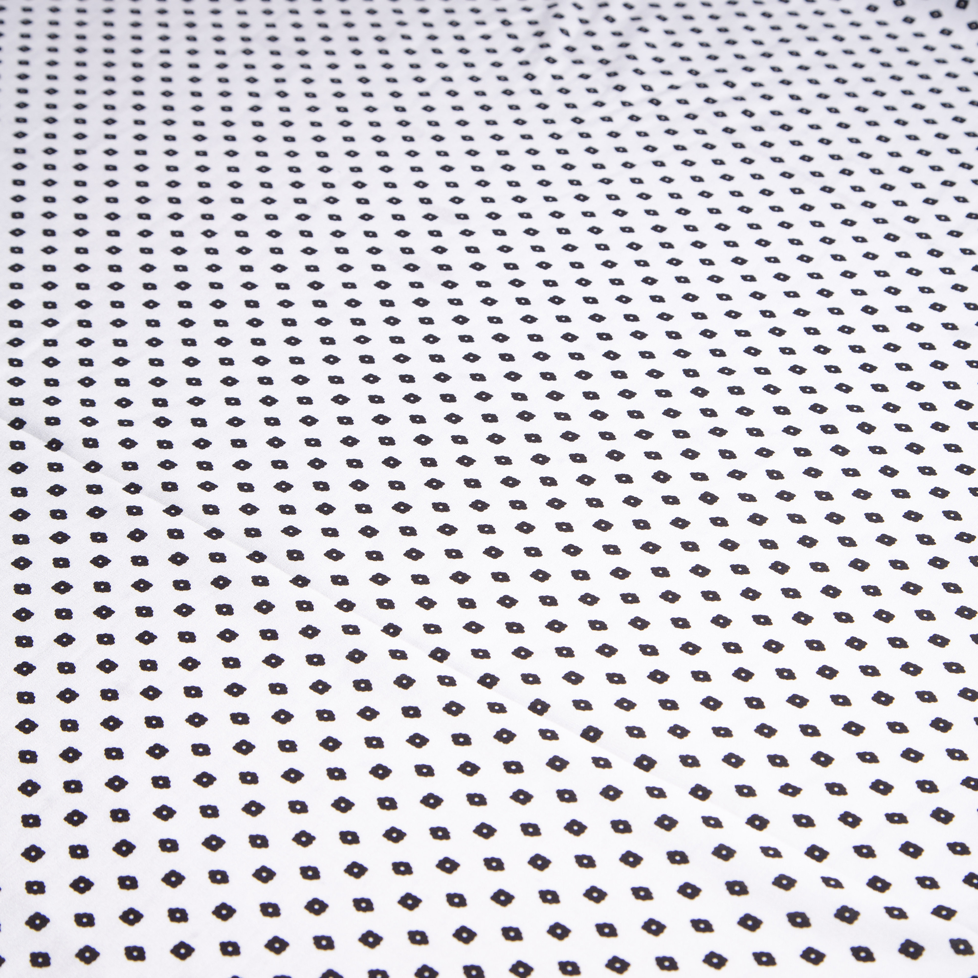 1,50 μ φάρδος. 100% βισκόζη. Απεικονίζονται γεωμετρικά μοτίβα σαν μικρά διαμάντια σε μαύρο χρώμα με λευκό φόντο. Βασικά χαρακτηριστικά του υφάσματος είναι η φυσική υφή και η μαλακή αίσθηση που προσφέρει. Είναι απαλή και λεία βοηθώντας παράλληλα το σώμα να αναπνέει. Πέφτει πολύ ωραία έχοντας αέρινη και ανάλαφρη κίνηση. Τέλος, απορροφά τον υγρασία κάτι που την καθιστά την καταλληλότερη, ίσως, επιλογή για τους ζεστούς καλοκαιρινούς μήνες. Δεν δυσκολεύει στο ράψιμο και με αυτήν μπορούν να δημιουργηθούν ρούχα όπως κιμονό, παντελόνια, πουκάμισα, μπλούζες, φούστες κ.α.