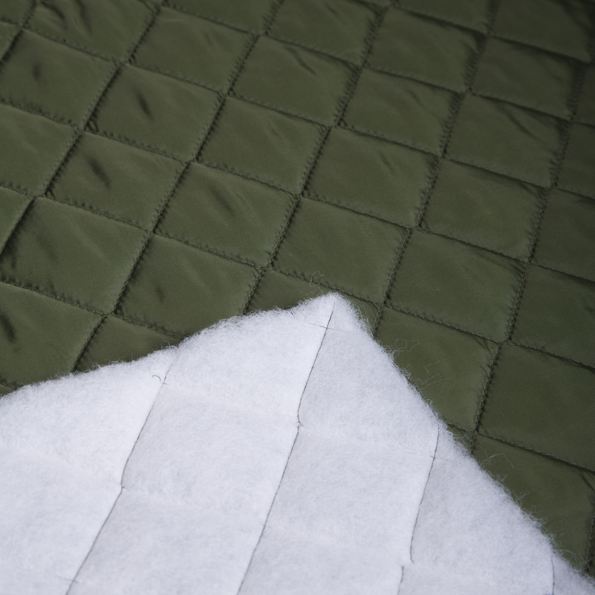 1.50 μ καθαρό φάρδος. Ύφασμα που αποτελείται εσωτερικά από χοντρή επένδυση υαλοβάμβακα (περίπου 1εκ) και εξωτερικά από ψιλό πολυέστερ. Οι ραφές, επίσης, σχηματίζουν τετράγωνα. Διαθέτει απαλή και αφράτη υφή και μπορεί να χρησιμοποιηθεί για εσωτερική επένδυση σε μπουφάν, για φόδρα σε τσάντες, για γιλέκα κτλ.