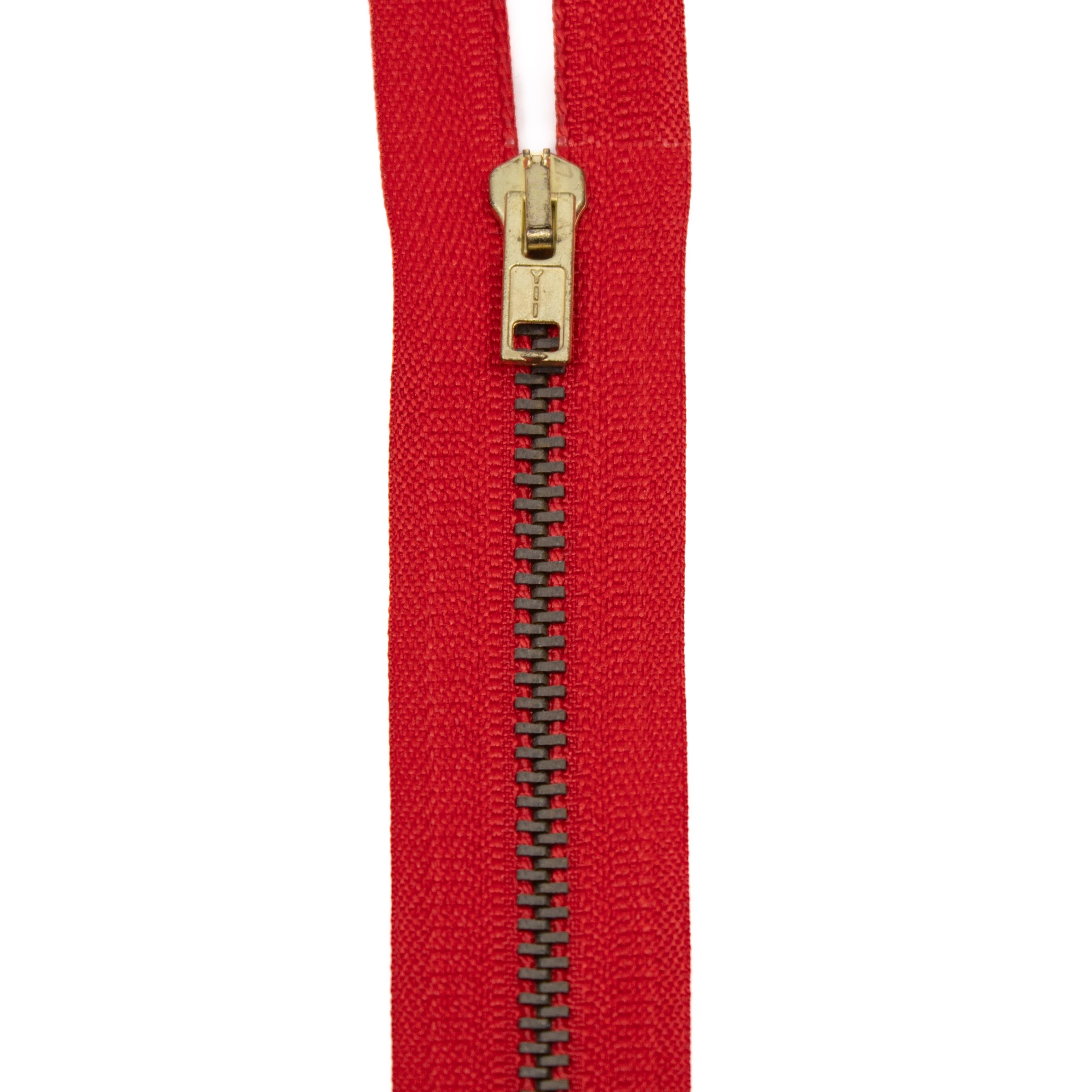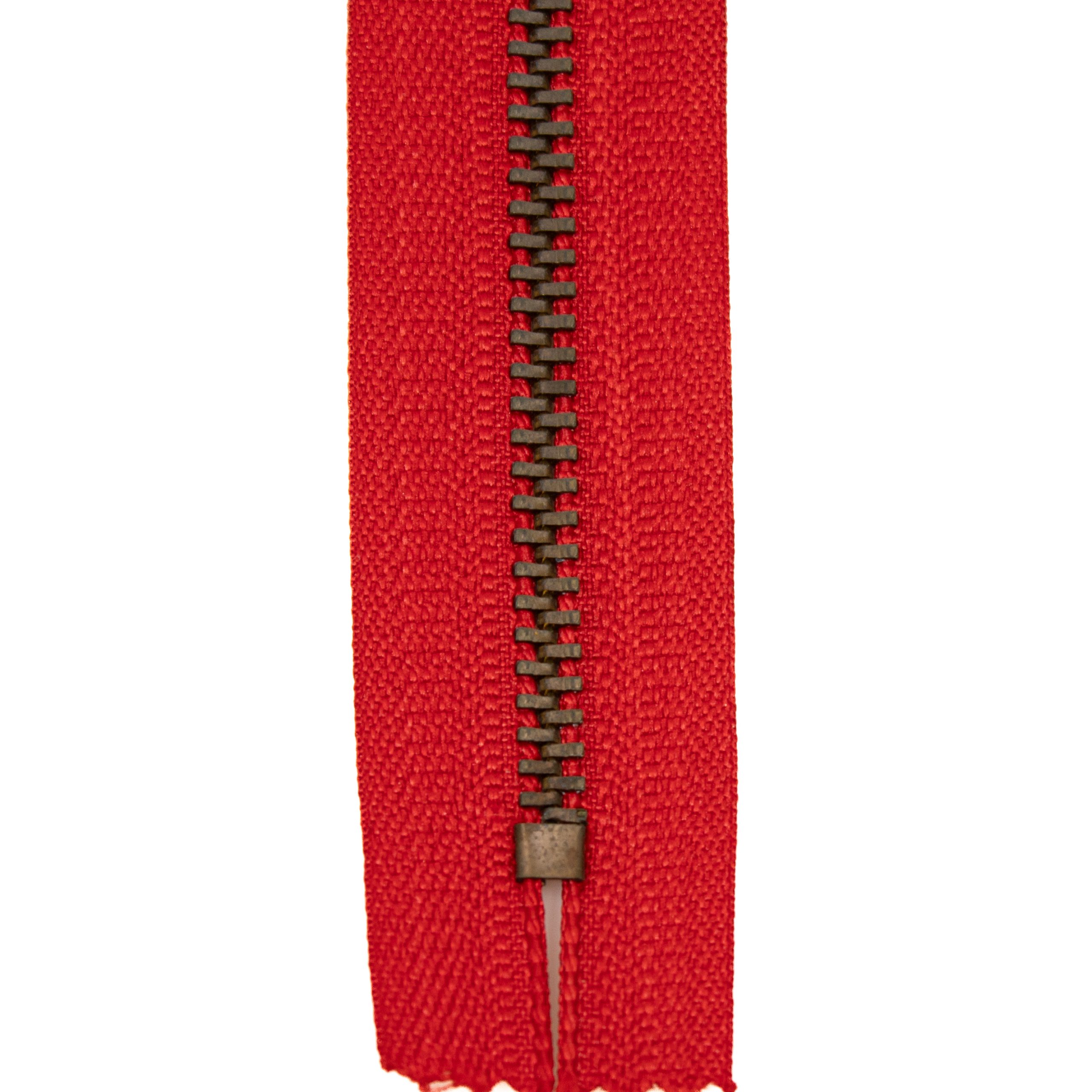 Σιδερένιο Φερμουάρ με μπρονζέ δόντια. Αυτού του είδους τα φερμουάρ είναι ιδανικά για εφαρμογές που απαιτούν μέγιστη αντοχή και σταθερό κλείσιμο. Τα μεταλλικά δόντια προσφέρουν ανθεκτικότητα στην φθορά και στον χρόνο. Διαθέτουν Στοπ στο κάτω μέρος, ώστε να μην επιτρέπεται ο διαχωρισμός τους. Τέλος, προτείνονται για νεσεσέρ, τσάντες, παντελόνια κ.α