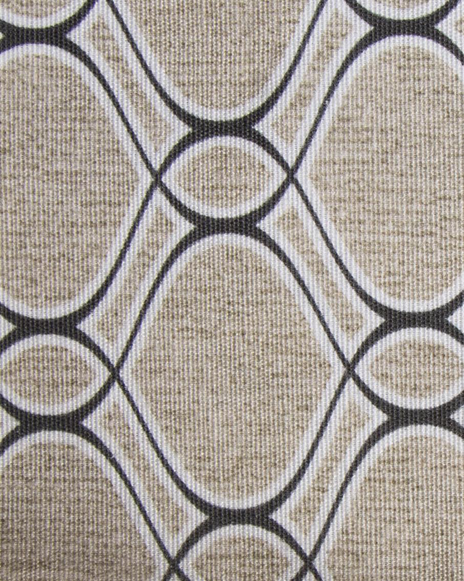 2,80 Μ φάρδος . 65% βαμβάκι 35% πολυέστερ. Στο φόντο απεικονίζεται γεωμετρικό μοτίβο με καμπυλωτές γραμμές σε μαύρες, άσπρες και μπεζ αποχρώσεις. Ύφασμα με απαλή αίσθηση και μεγάλη ανθεκτικότητα, το οποίο είναι εύκολο στην συντήρηση και στο σιδέρωμα. Η καθημερινή χρήση δεν το ταλαιπωρεί και μπορεί να χρησιμοποιηθεί για την ραφή καλυμμάτων καναπέδων για μαξιλάρια, κουρτίνες , τραπεζομάντηλα, χειροτεχνίες και κάθε είδους DIY έργα, όπως τσάντες. Δεν προτείνεται για την ραφή ριχταριών, καθώς τσαλακώνει.