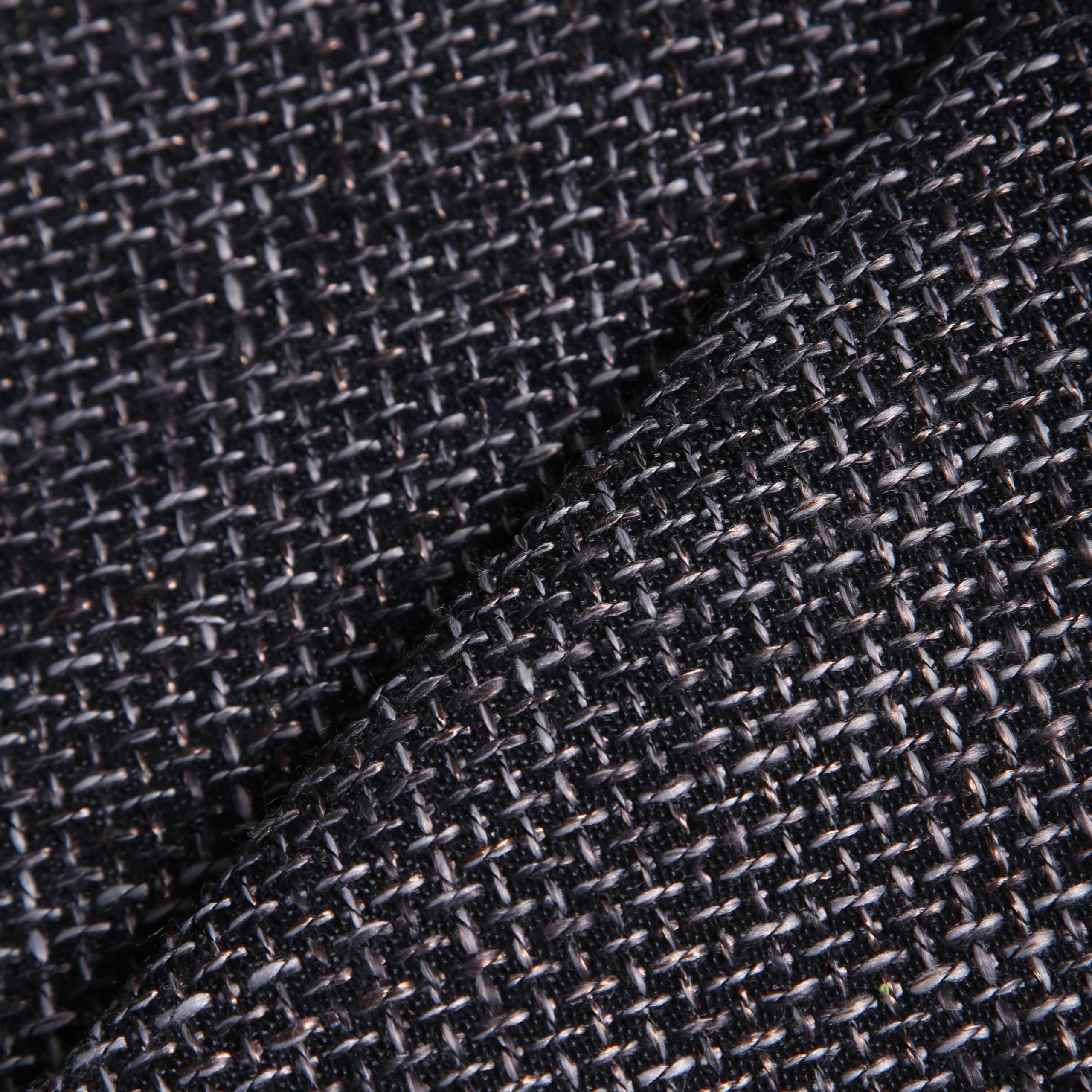 1.50 μ φάρδος. 65% πολυέστερ 35% βαμβάκι. Ύφασμα επίπλωσης με πυκνή και ανάγλυφη ύφανση στο οποίο εναλλάσσονται γκρι και ασημί συνδυασμοί σε μαύρο φόντο. Διαθέτει χοντρή πλέξη τύπου ψάθας, η οποία δημιουργεί ένα σταθερό και δεμένο αποτέλεσμα. Η ανάγλυφη του επιφάνεια χαρίζει βάθος και πολυτέλεια. Είναι εξαιρετικά ανθεκτικό στον χρόνο και παράλληλα δεν χάνει την αισθητική του. Μπορεί να χρησιμοποιηθεί τόσο για επιπλώσεις όσο και για κατασκευές όπως νεσεσέρ και τσάντες