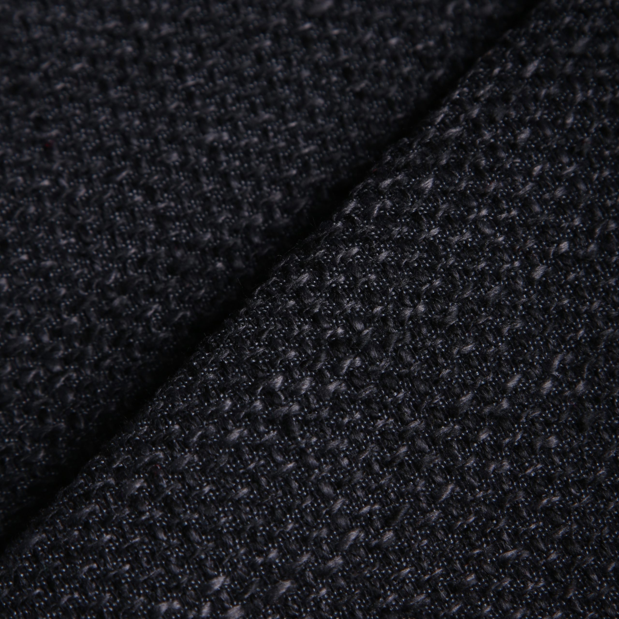 1.50 μ φάρδος. 65% πολυέστερ 35% βαμβάκι. Ύφασμα επίπλωσης με πυκνή και ανάγλυφη ύφανση στο οποίο εναλλάσσονται σκούροι γκρι συνδυασμοί σε μαύρο φόντο. Διαθέτει χοντρή πλέξη τύπου ψάθας, η οποία δημιουργεί ένα σταθερό και δεμένο αποτέλεσμα. Η ανάγλυφη του επιφάνεια χαρίζει βάθος και πολυτέλεια. Είναι εξαιρετικά ανθεκτικό στον χρόνο και παράλληλα δεν χάνει την αισθητική του. Μπορεί να χρησιμοποιηθεί τόσο για επιπλώσεις όσο και για κατασκευές όπως νεσεσέρ και τσάντες