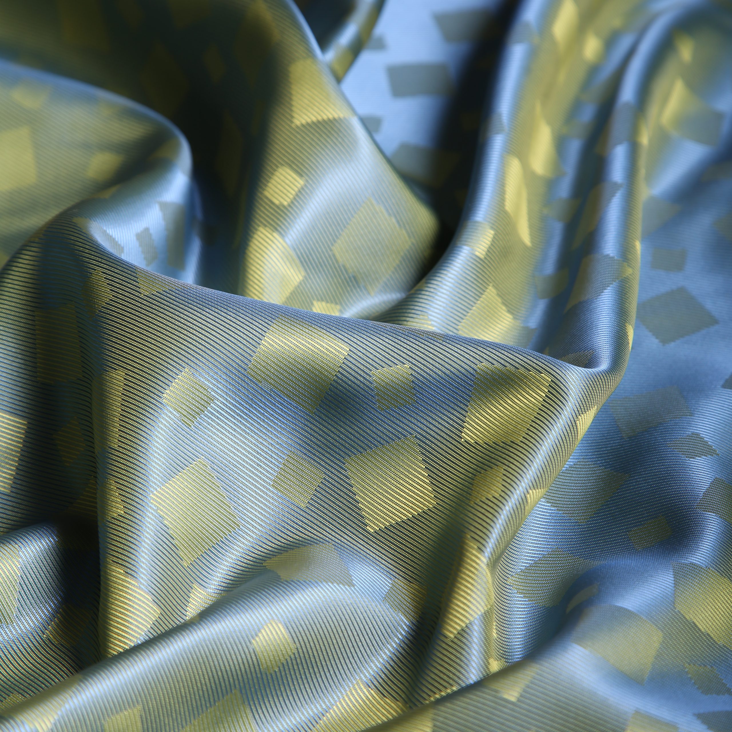 1.45 μ φάρδος. 100% βυσκόζη. Φόδρα διπλής όψης στο φόντο της οποίας απεικονίζονται γεωμετρικά σχέδια (τετράγωνα) σε πράσινο μπλε φόντο. Έχει απαλή, λεία και γυαλιστερή υφή. Βοηθάει το σώμα να αναπνέει, δεν ηλεκτρίζει και δεν κολλάει όταν έρθει σε επαφή με το δέρμα. Προτείνεται να μπει σε νερό πριν από την ραφή, για να μαλακώσει και να έρθει στην τελική της διάσταση (απώλεια 2-3%). Μπορεί να χρησιμοποιηθεί σε ρούχα αλλά και τσάντες.