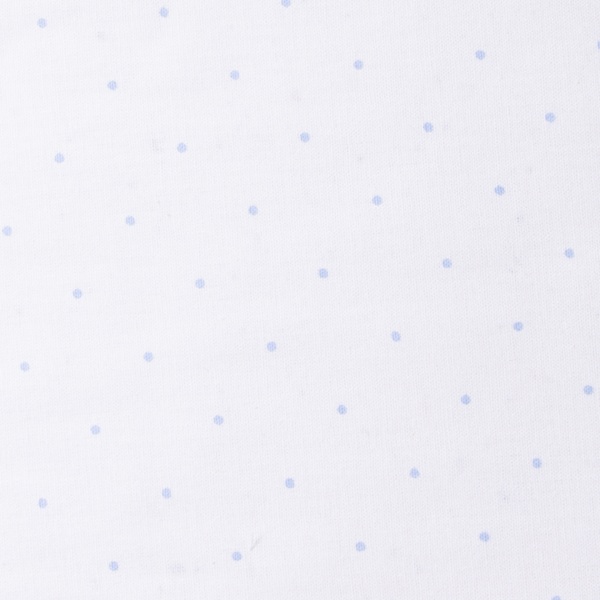 2,40 μ φάρδος. 100% βαμβάκι. Στο φόντο υπάρχουν γαλάζιες πουά κουκίδες σε άσπρη βάση. Είναι πολύ φιλικό προς το δέρμα και το βοηθά να αναπνέει. Χαρακτηρίζεται, επίσης από ανθεκτικότητα και από πολύ μαλακή και απαλή υφή. Προτείνεται ανεπιφύλακτα και για βρέφη. Μπορεί να χρησιμοποιηθεί και για διάφορες κατασκευές όπως νεσεσέρ και τσάντες. Πρέπει να πλυθεί πριν ραφτεί καθώς μαζεύει 2-3%.