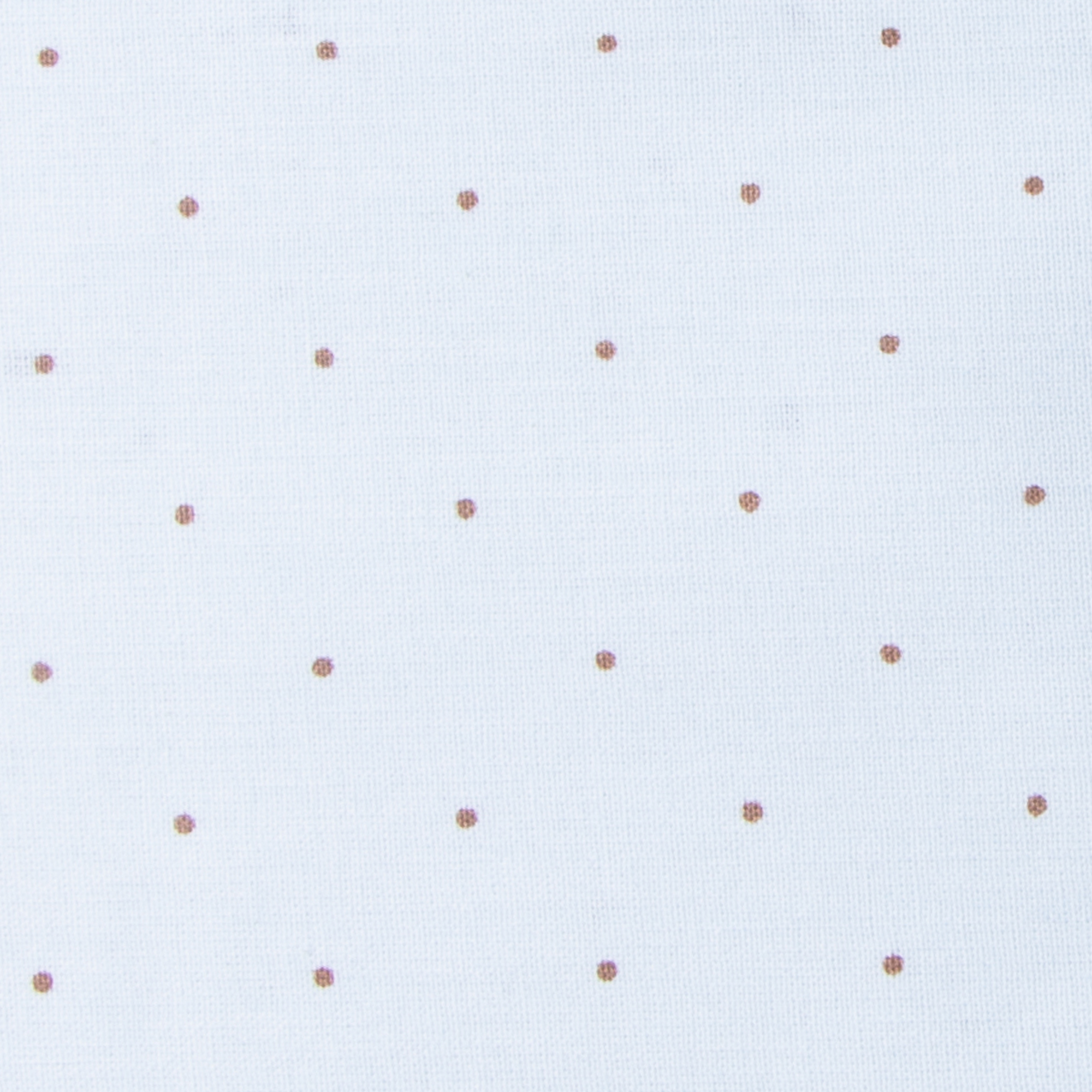 2,40 μ φάρδος. 100% βαμβάκι. Στο φόντο υπάρχουν καφέ πουά κουκίδες με γαλάζια βάση. Είναι πολύ φιλικό προς το δέρμα και το βοηθά να αναπνέει. Χαρακτηρίζεται, επίσης από ανθεκτικότητα και από πολύ μαλακή και απαλή υφή. Προτείνεται ανεπιφύλακτα και για βρέφη. Μπορεί να χρησιμοποιηθεί και για διάφορες κατασκευές όπως νεσεσέρ και τσάντες. Πρέπει να πλυθεί πριν ραφτεί καθώς μαζεύει 2-3%.